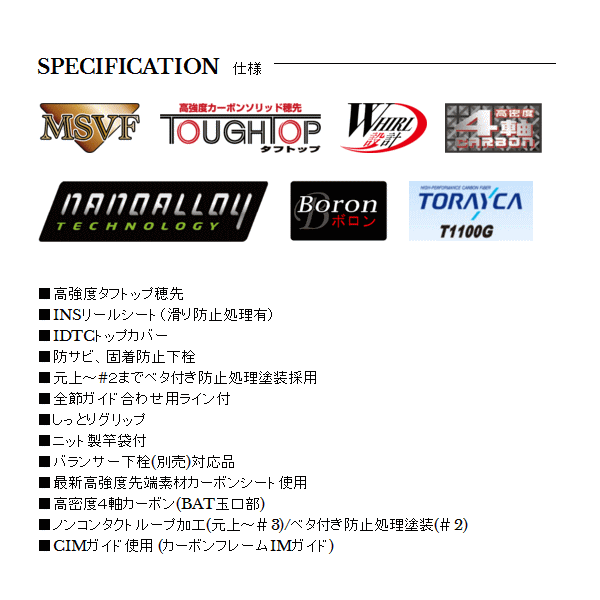 ・BATの一部にBoron素材を使用し、感度と共に操作性も大幅にアップ。