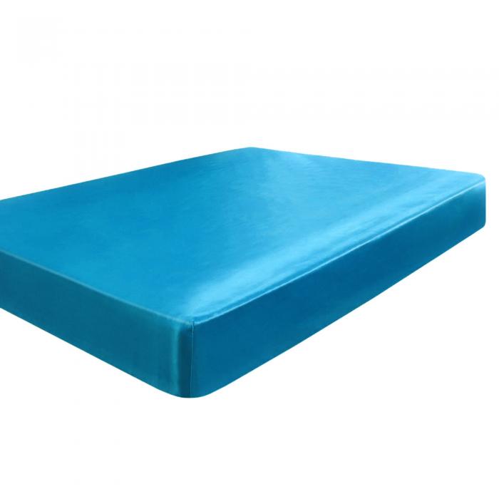 uxcell ボックスシーツ マットレスカバー サテン 洋式・和式兼用 ベッドカバー レーヨン素材 夏用 ベッドシーツ ツルツル マチ部分約30cm 着脱簡単 通気性 丸洗い可能 青緑色 シングル・100×190cm