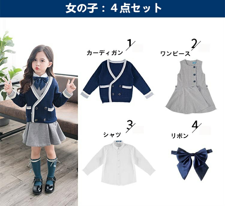 セット内容 ✽.*꙳ 男の子:カーディガン/シャツ/パンツ/ネクタイ/サスペンダー女の子:カーディガン/シャツ/ワンピース/リボン「記載のないアクセサリー、小物等は付属しません」 素材 ✽.*꙳ コットン/ポリエステル カラー ✽.*꙳ 女の子/男の子 サイズ (cm) ✽.*꙳ カーディガン100/着丈37 バスト66 袖丈35110/着丈40 バスト68 袖丈37120/着丈43 バスト72 袖丈41130/着丈46 バスト78 袖丈45140/着丈49 バスト82 袖丈49150/着丈52 バスト88 袖丈52160/着丈56 バスト94 袖丈54シャツ100/着丈49 バスト68 袖丈34110/着丈52 バスト72 袖丈37120/着丈55 バスト76 袖丈41130/着丈58 バスト80 袖丈45140/着丈61 バスト84 袖丈49150/着丈64 バスト88 袖丈52160/着丈67 バスト92 袖丈56ワンピース100/ウエスト57 スカート丈55110/ウエスト60 スカート丈58120/ウエスト62 スカート丈61130/ウエスト66 スカート丈64140/ウエスト70 スカート丈68150/ウエスト74 スカート丈72160/ウエスト78 スカート丈76パンツ100/ウエスト43 パンツ丈62110/ウエスト45 パンツ丈67120/ウエスト47 パンツ丈72130/ウエスト49 パンツ丈77140/ウエスト53 パンツ丈82150/ウエスト53 パンツ丈87160/ウエスト55 パンツ丈92※表記寸法と実寸値の多少の誤差はご容赦ください。