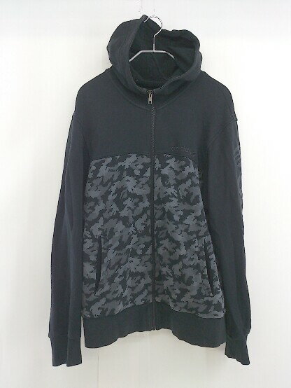 ◇ adidas アディダス スウェット 長袖 ジップアップパーカー サイズM ブラック グレー カモフラ メンズ 【中古】