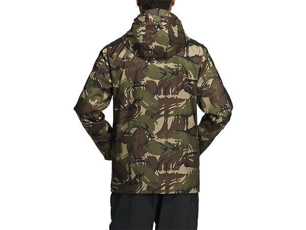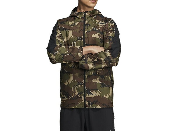 AOPカモ柄背中から肘までソリッドウーブン。