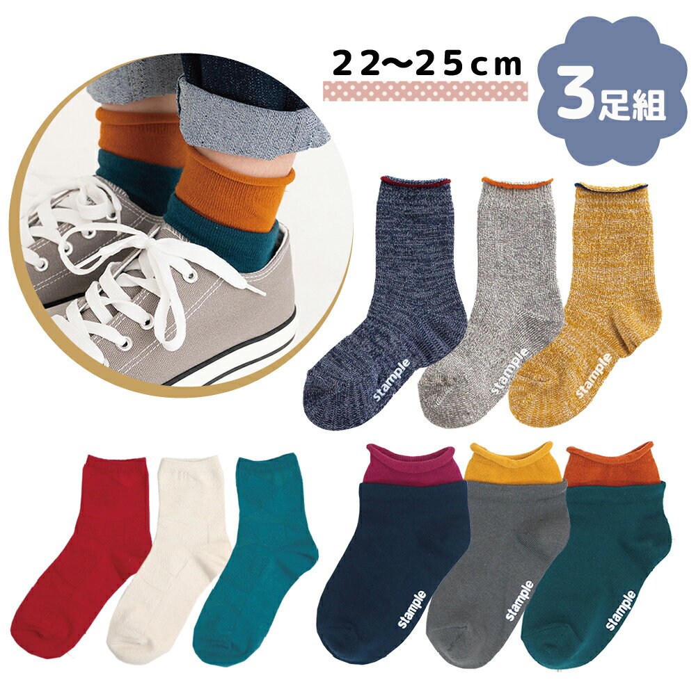 定番【stample/スタンプル】ダブル タブ ローカット ソックス 3足組≪M/16-18cm L/19-21cm LL/22-25cm≫キッズ ジュニア レディース くつした 靴下 ショート丈 カジュアル 親子 兄弟 姉妹 お揃い 男の子 女の子