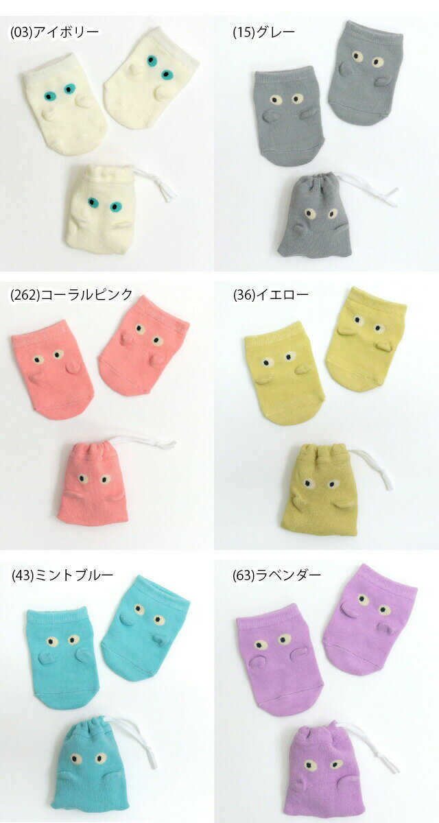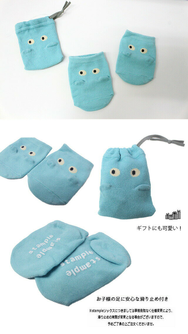 きんちゃく入りのおばけベビーソックス◎ きんちゃくには履き替えたソックスを収納したり、お菓子を入れたり 小物を入れたり、色々な用途に使えますね! ソックスは伸縮性があり履き心地もGOODです! 普段使いはもちろん、お誕生日のお祝い・イベント等のプレゼントにも最適です! 足裏のスタンプルオリジナルロゴがすべり止めになっているので小さなお子さまにも安全です。