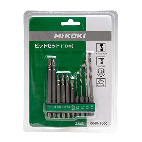 ◆商品名:HiKOKI(ハイコーキ) 旧日立工機 ビット10本セット インパクトドライバー、ドライバードリル用 六角二面幅6.35mm 0040-1000 六角軸二面幅:6.35mm セット内容:[ドリル]2.0mm、3.0mm、4.0mm、5.0mm、[両頭ドライバービット] ⊕No.1×75mm(1本)、⊕No.2×75mm(2本)、⊕No.2×100mm(2本)、⊕No.2+⊖6×65mm(1本) ドリル:一般鋼材、樹脂、木材などの穴あけ用※ステンレス材や熱処理した鋼材には使用不可 ドライバービット:建築、内容、一般作業に ドライバービットは収納に便利なビットホルダ—付き、コードレスインパクトドライバ対応。