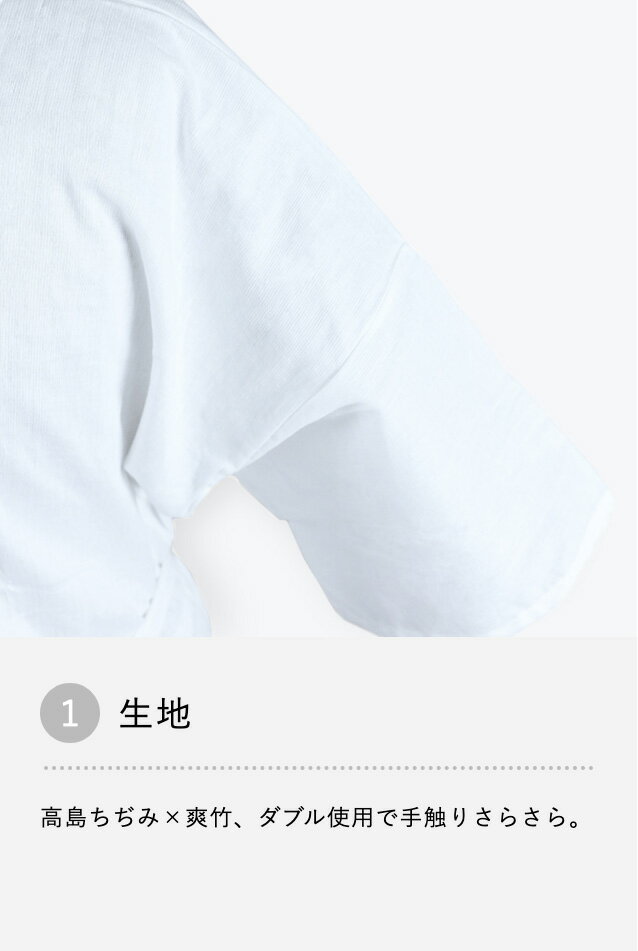 1生地高島ちぢみ×爽竹、ダブル使用で手触りさらさら。