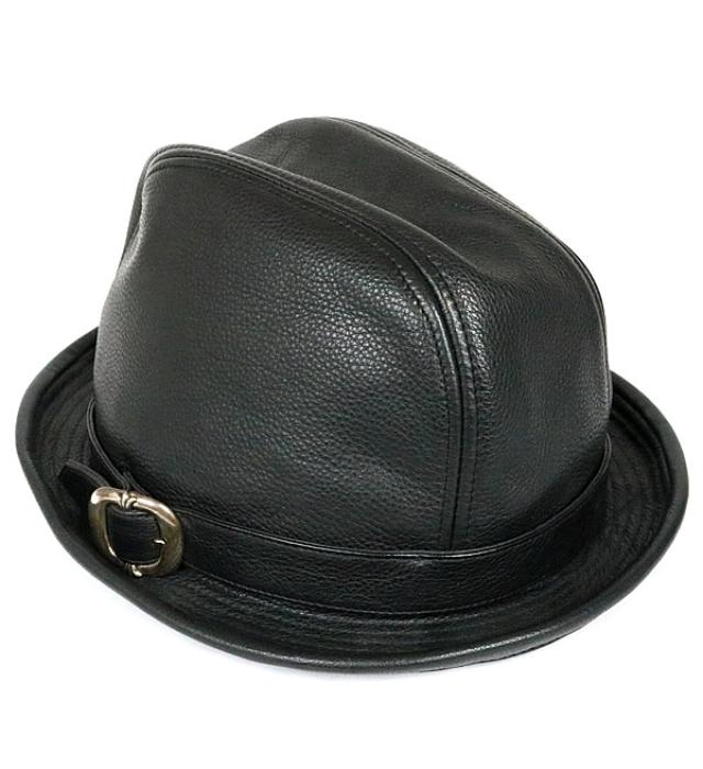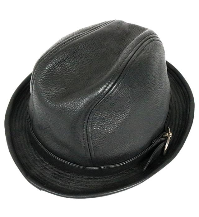 CHROME HEARTS 銀座店 クロムハーツ ガンスリンガー BSフレア フェドラハット レザー 帽子 メンズ 黒 size:L