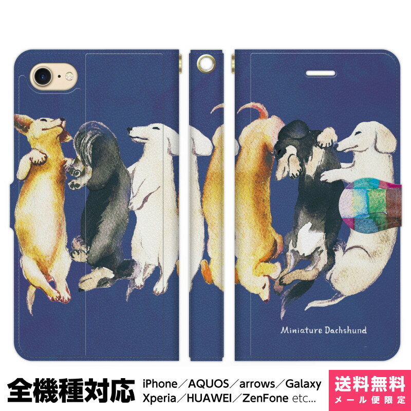 全機種対応 スマホケース 手帳型 iPhone 13 12 11 SE XR 8 Pro Max mini Xperia AQUOS Galaxy ケース カバー NoA グッズ ペット 犬 イヌ イラスト ダックス アニマル デザイナーズ かわいい アイフォン アイホン 手帳 スタンド付 携帯ケース プレゼント ギ