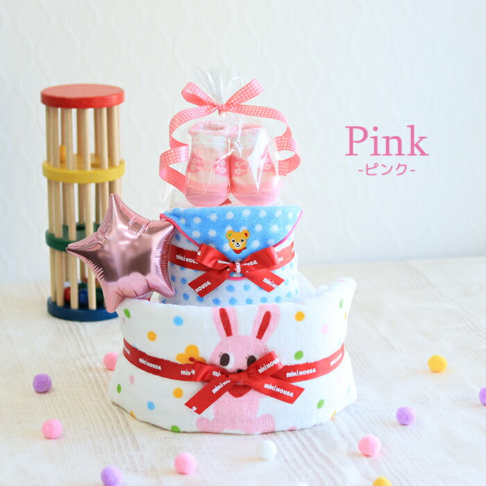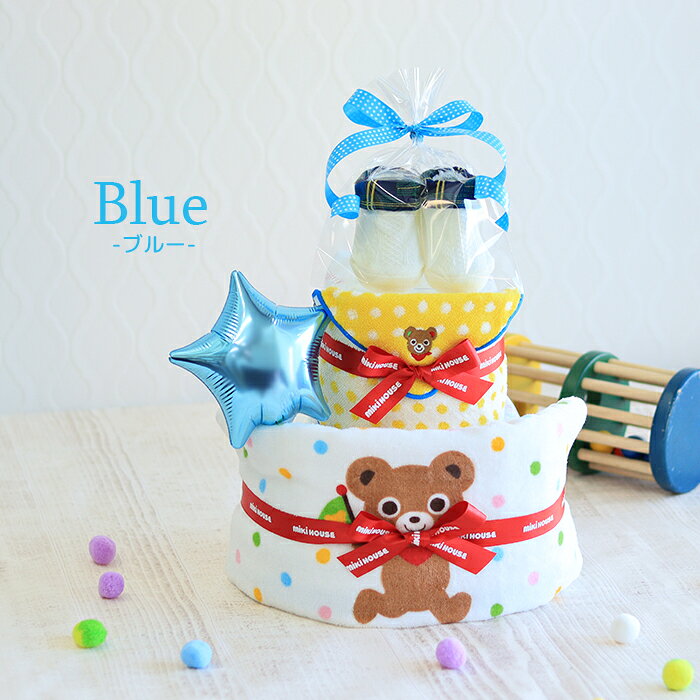 おむつケーキ 出産祝い ドット ミキハウス 2段 mikihouse ミニタオル フェイスタオル ソックス 送料無料 アレンジ 名入れ お名前 オムツケーキ 男の子 女の子 パンパース 誕生日 1歳 ラトル スタイ バルーン 記念 ベビーシャワー ポップ ホットビスケッツ ギフト お祝い