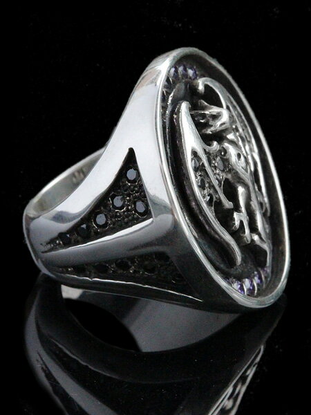 こちらの【ジョニーデップモデル】はリングのフチに沿ってDark Purple Zirconiaがセットされており、更にはコウモリの羽の中、またリングの両側のサイドにもBlack Zirconiaがセットされております。