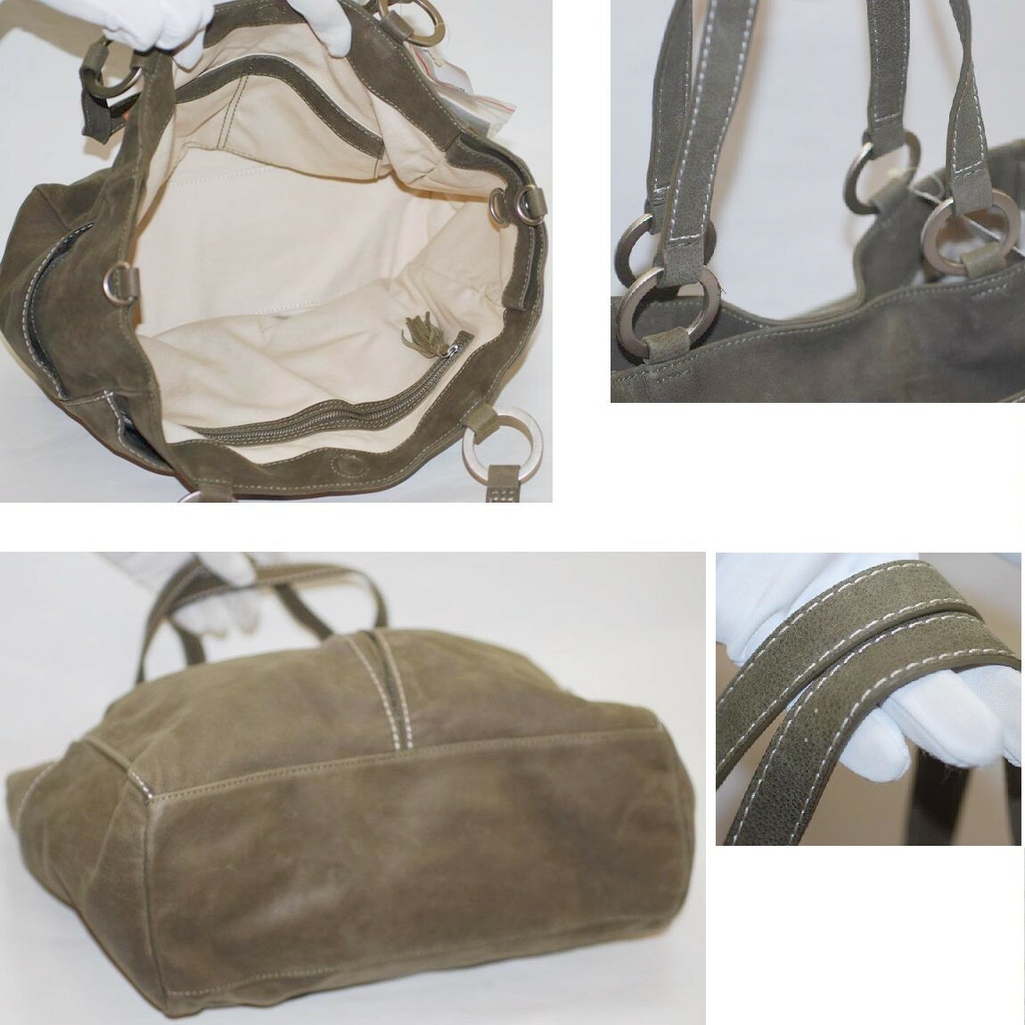 【中古】本物未使用BARCOSバルコスのグレーがかった緑色革素材のトートバッグ サイズW36H22D12,5cm NY-63 4-003