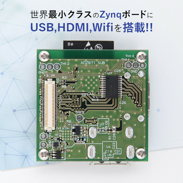 ADZBT1には、ARM Coretex-A9 Processer搭載のFPGAが実装されており、この拡張ボードと組み合わせることで、 USB, HDMI, Wifiのインターフェースを使用することができます。