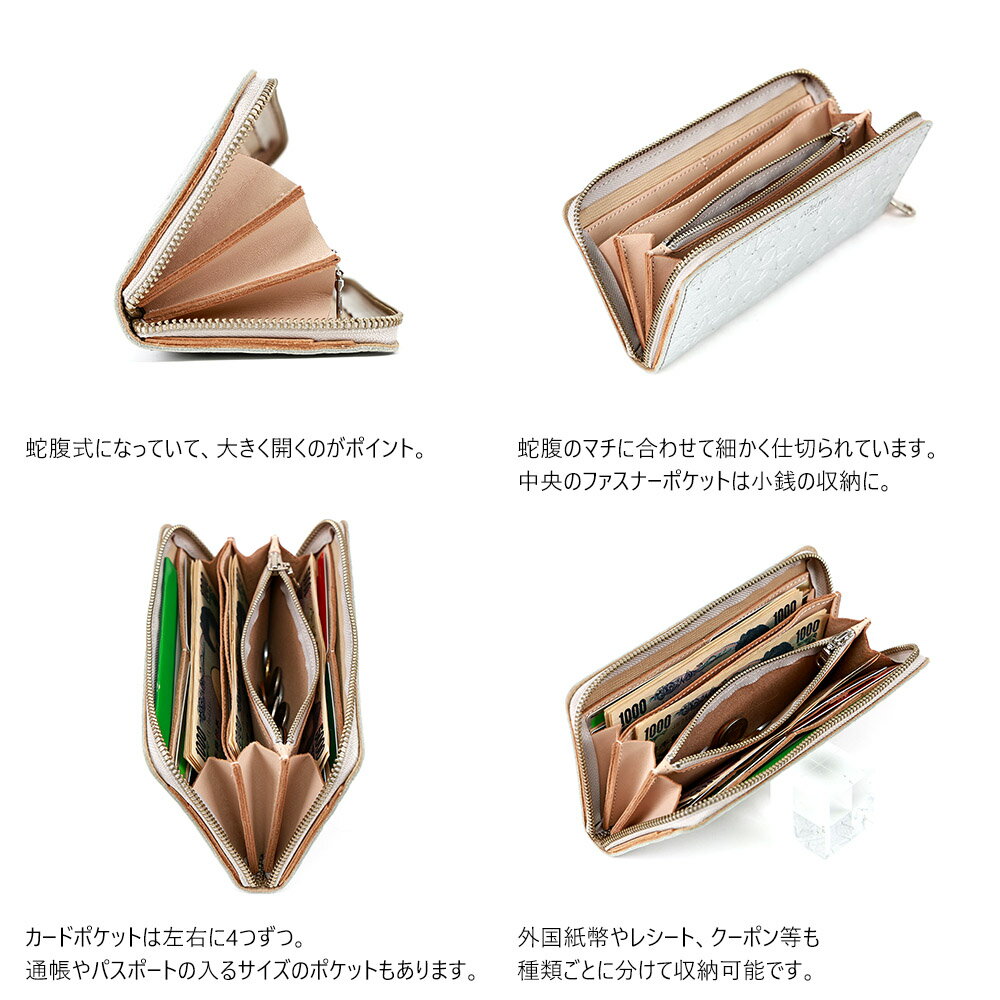 Detail 商品説明 ■素材:牛革 ■サイズ:W19× H9.7× D2.5(cm) ■重量:約175g 収納力抜群のシンプルフォルムのラウンドファスナー長財布。