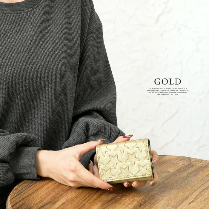 [8月は毎日!メール便で送料無料!]星柄なのに大人っぽい。星型押しミニ財布/財布 三つ折り財布 小銭入れ レディース コンパクト ミニ財布 星 小さめ 母の日 ギフト プレゼント【あす楽】【メール便可(1点まで)】[M便 1/1]