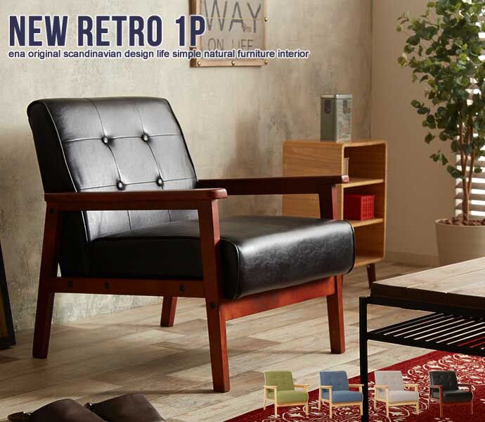 NEW RETRO 北欧風 1人掛けソファ ソファ ソファー 1人掛けソファー 1Pソファ 1人掛けソファー 1Pソファー 1人掛け 1P PVC ファブリック 天然木 北欧 モダン レトロ