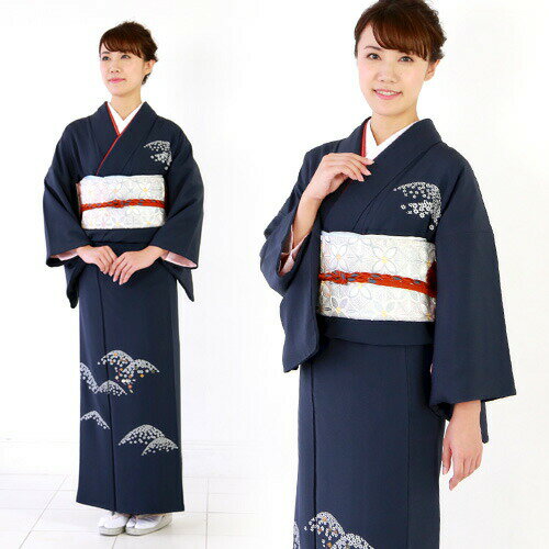 【レンタル】 訪問着 レンタル 正絹京友禅訪問着レンタル19点フルコーディネートレンタルセット 結婚式 入学式 七五三 ママ「紺地に刺繍入り小花の波 梅 紅葉 桜」 30代 40代 50代 60代