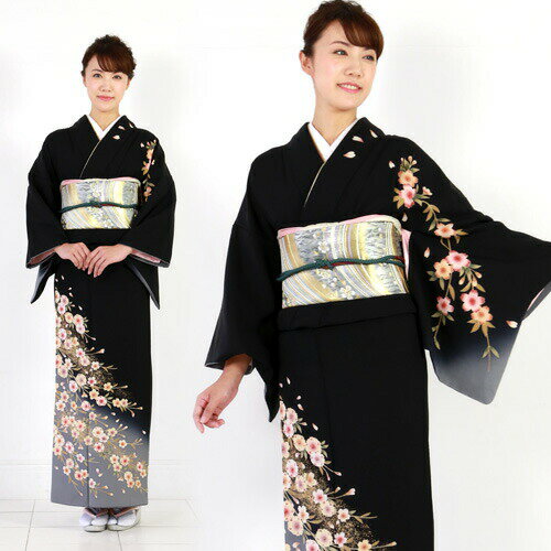 【美人きもの】【レンタル】 訪問着 着物 黒 20代 40代 ハイミセス 女性 七五三 パーティ 正絹【縮緬】 往復送料無料 3泊4日 kt6062
