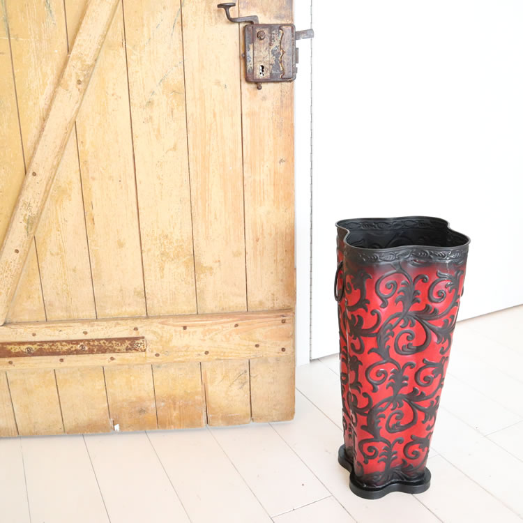 ■アンティーク調のワインレッドカラーがとても個性的なアイアン製傘立てです。