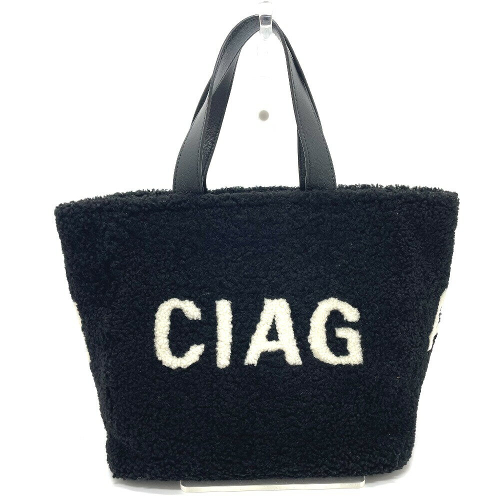 BALENCIAGA バレンシアガ 532873 ロゴ シアリング 2WAY ショルダーバッグ トートバッグ ムートン /レザー レディース ブラック 【中古】