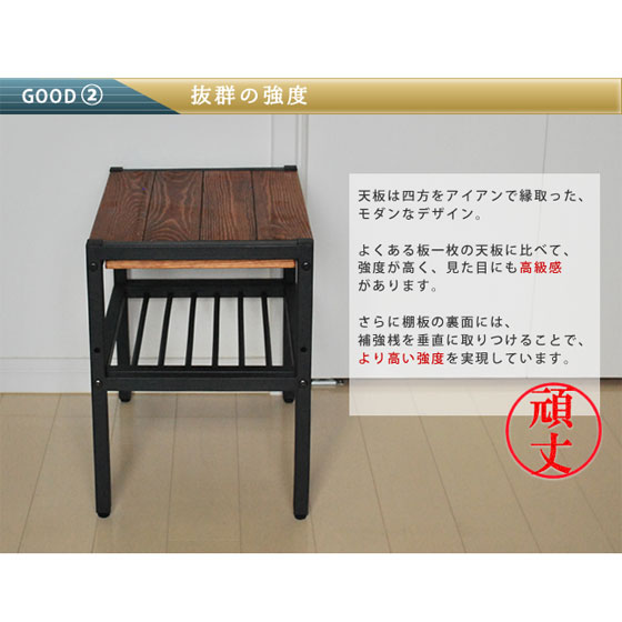アンティーク 天然木サイドテーブル アイアン ブリック 幅40cm PT-400BRN