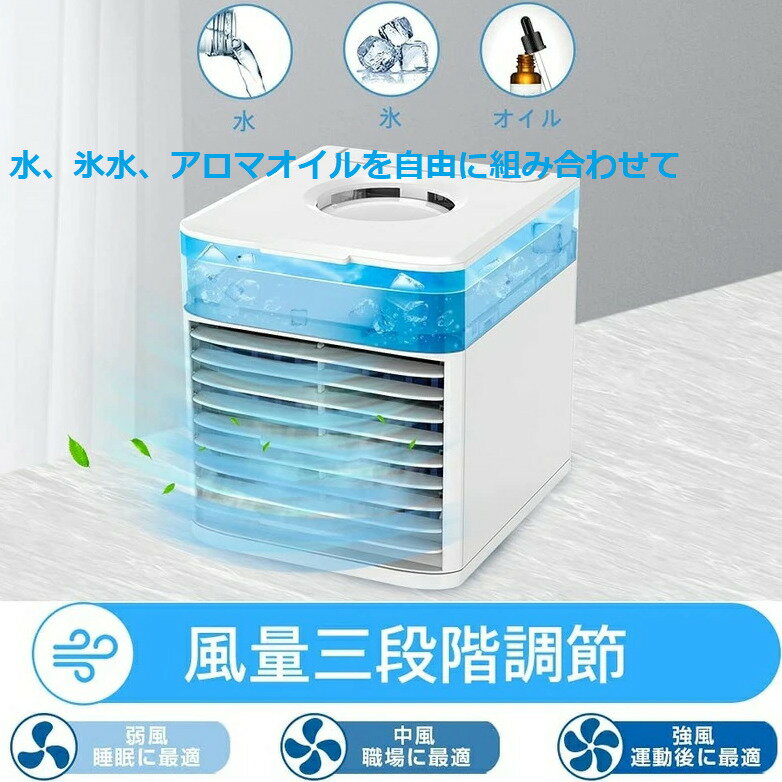 【高品質】SALE 10%OFF 2021年最新型 冷風機 冷風扇 卓上クーラー USB充電式 200ML大容量 ミニクーラー 小型 クーラー 冷房 ポータブルクーラー 3段階風量調節 加湿 夜灯 静音 携帯扇風機 持ち運び便利 角度調整 熱中症 暑さ対策 水漏防止 寝室 オフィス 車 プレゼント