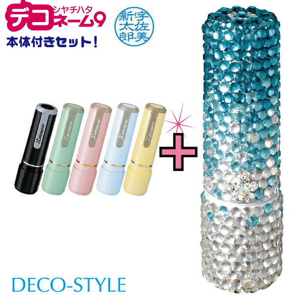 【印面付き】ネーム9 デコスタイル グラデーション柄 ブルー 着せ替えパーツ 本体つき シャチハタ(印面付 かわいい おしゃれ ナース 印鑑 ハンコ はんこ 判子 ネーム印 浸透印 着せ替え デコ シヤチハタ 看護師 しゃちはた スタンプ 子供 シャチハタ印 事務用品 文房具 文具)